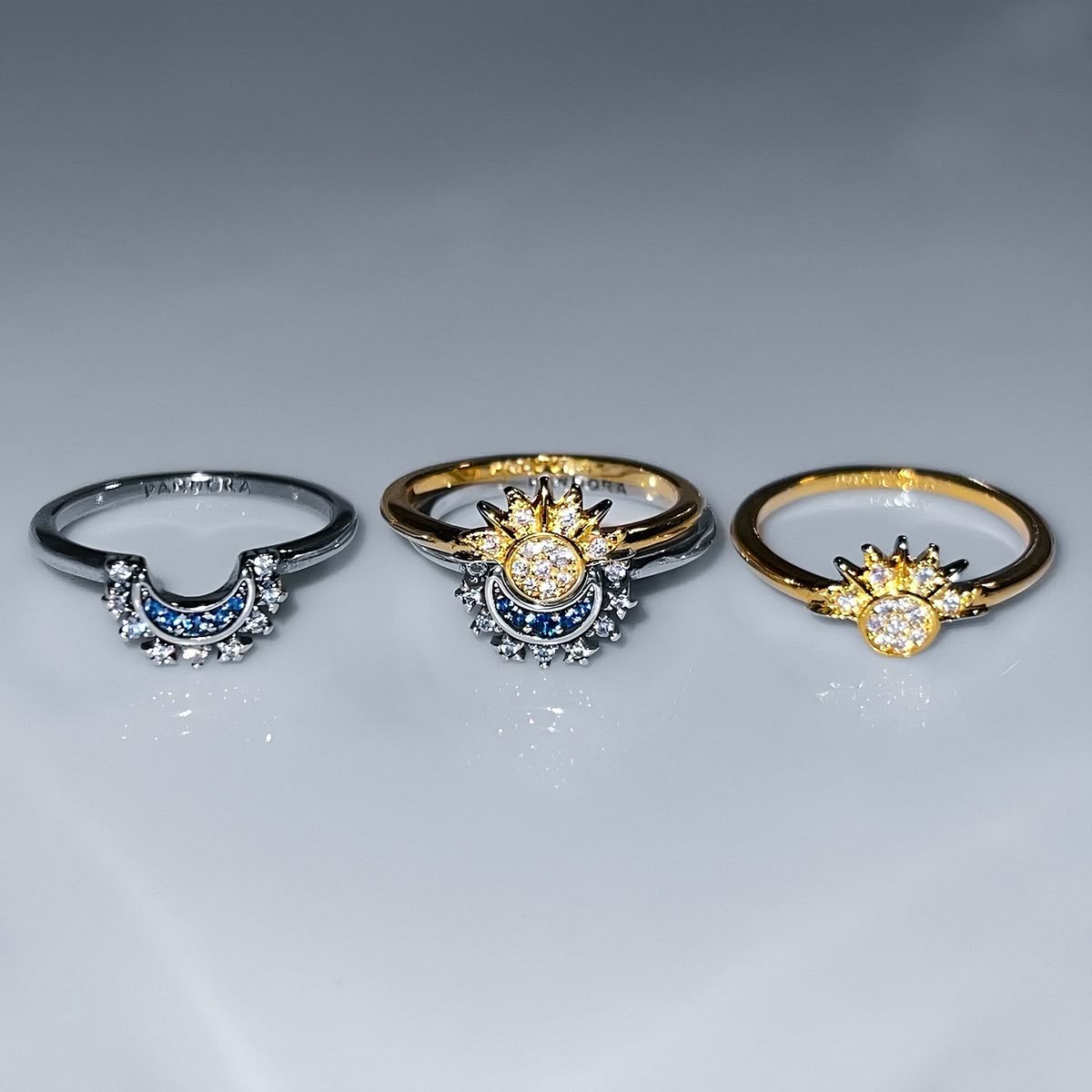 R: Se refiere a la combinación y armonía de los dos símbolos (Sol y Luna) en un diseño único e integrado, que representa la dualidad y la complementariedad de estas fuerzas. No se trata de dos anillos separados.