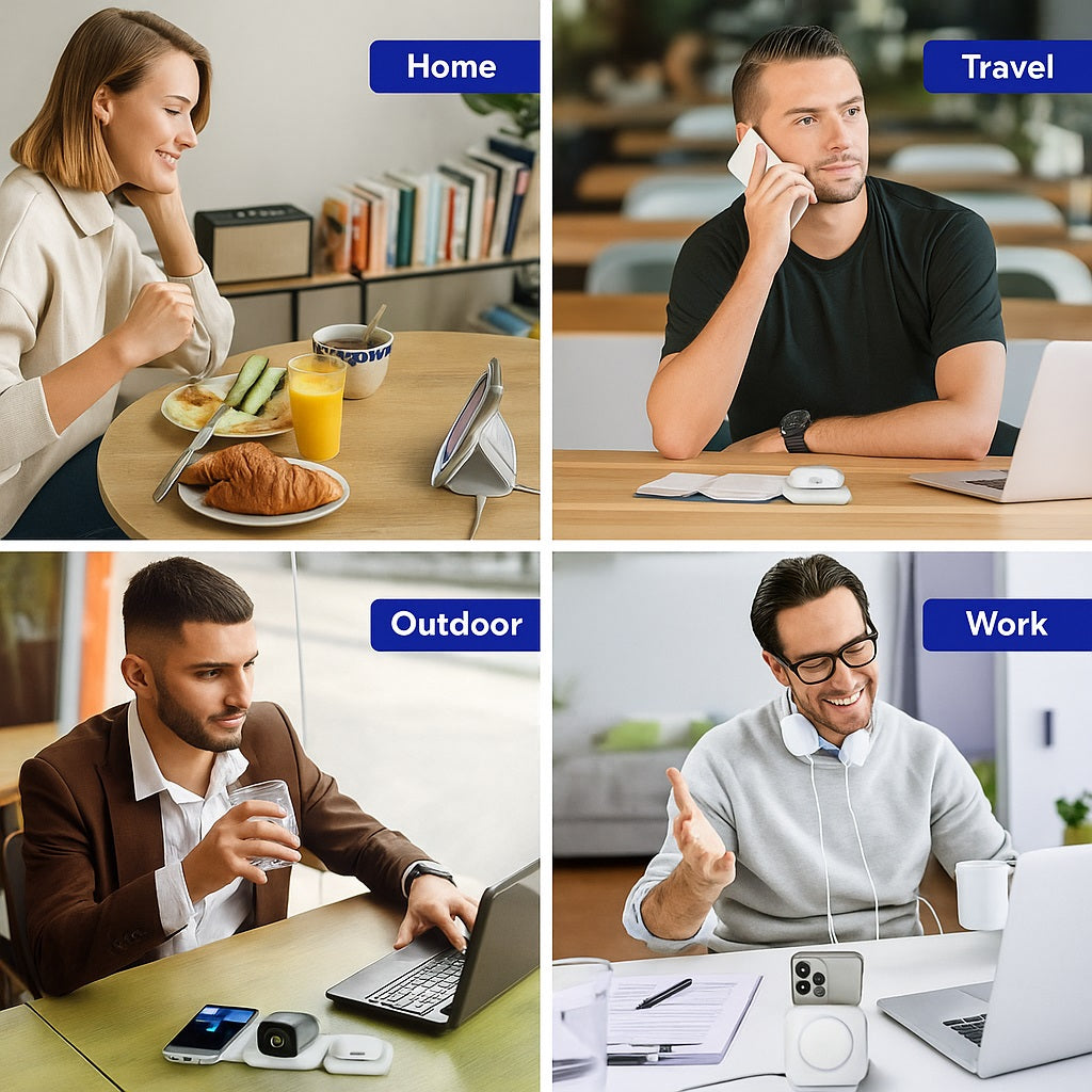 Convierte tu escritorio o mesa de noche en un espacio moderno, minimalista y ordenado, con un solo cargador para todos tus equipos.